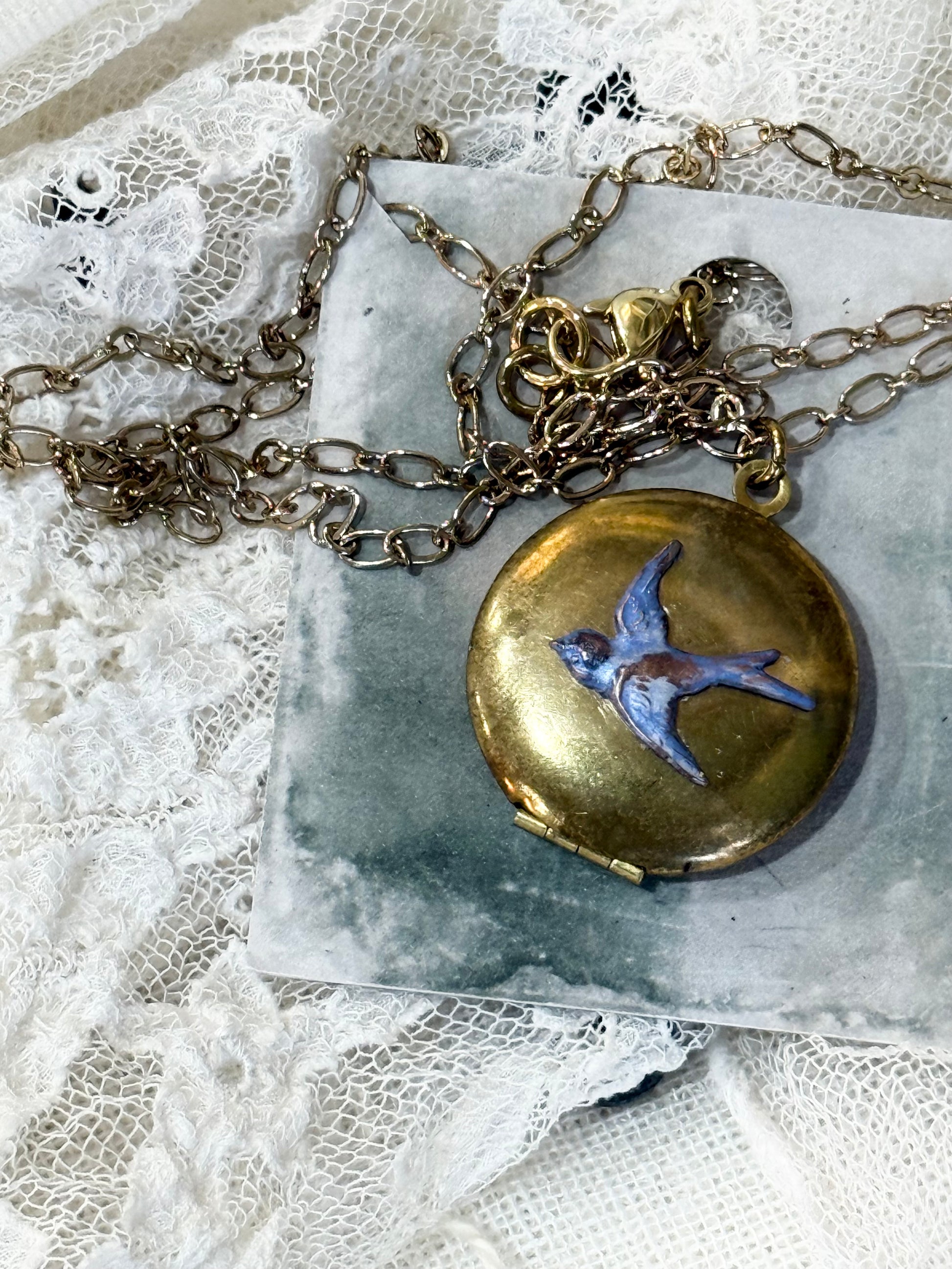 Antique Style Swallow Locket - 1 bird