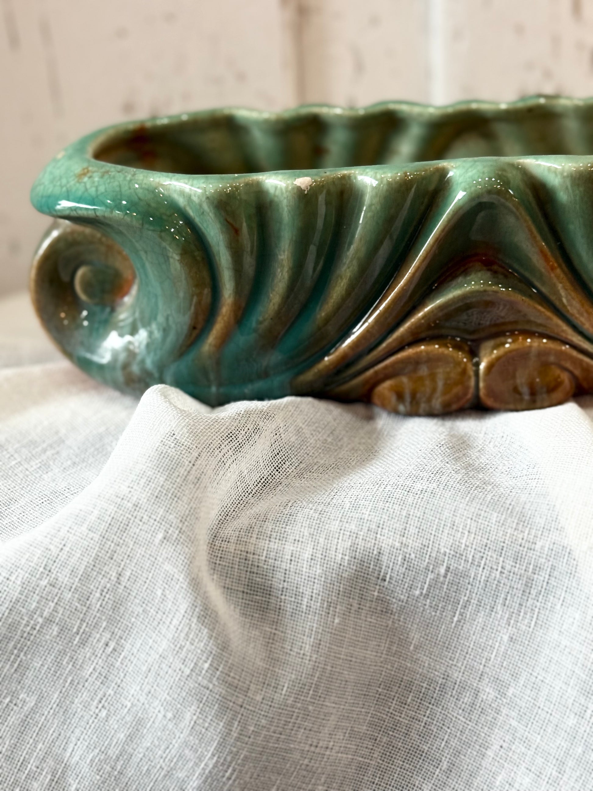 This is a beautifully detailed vintage Australian Diana Pottery trough vase in lovely green hues with touches of brown. A perfect addition to the pottery collection or a gorgeous vintage styling piece for the bookshelf or bedside.