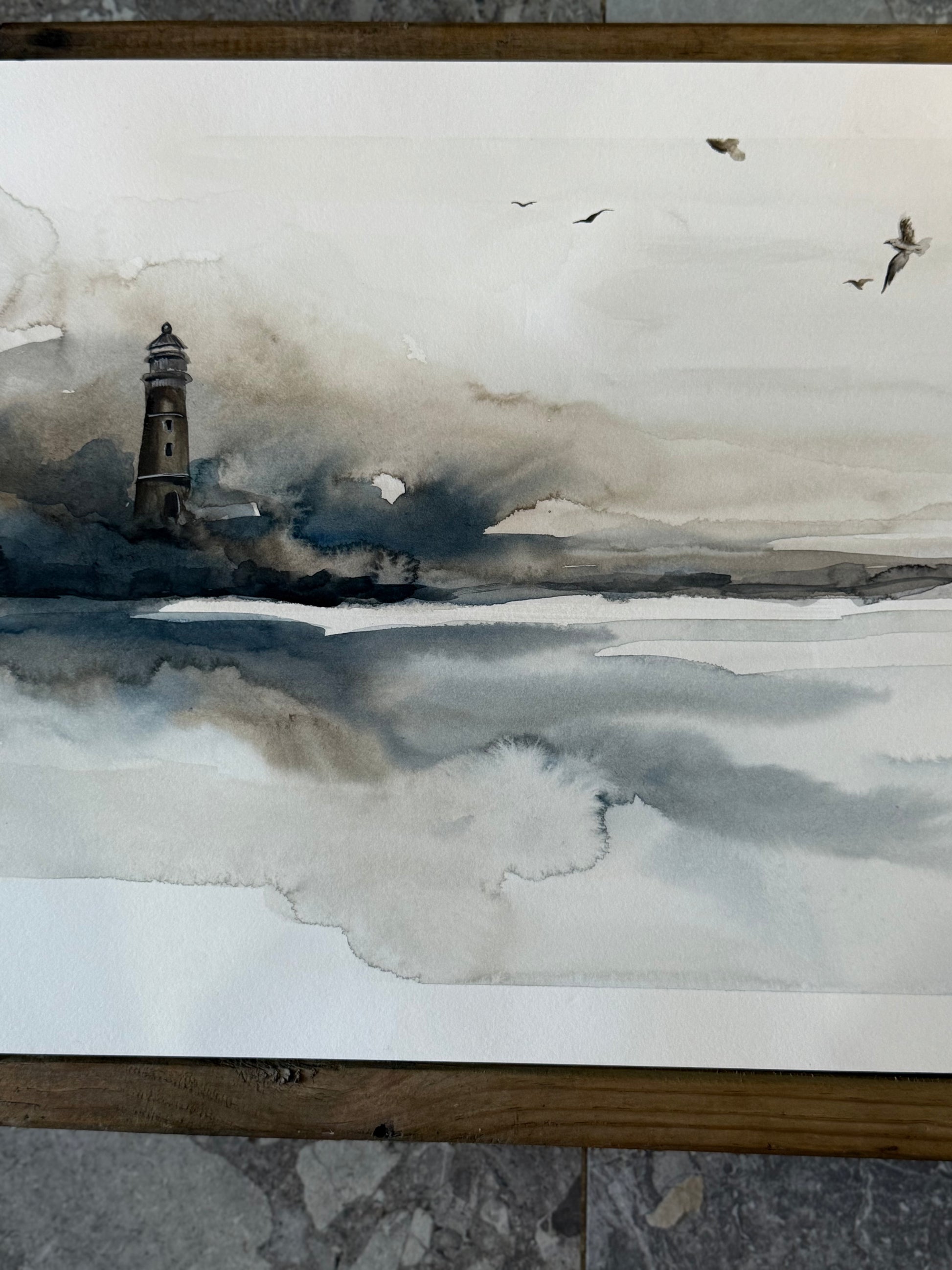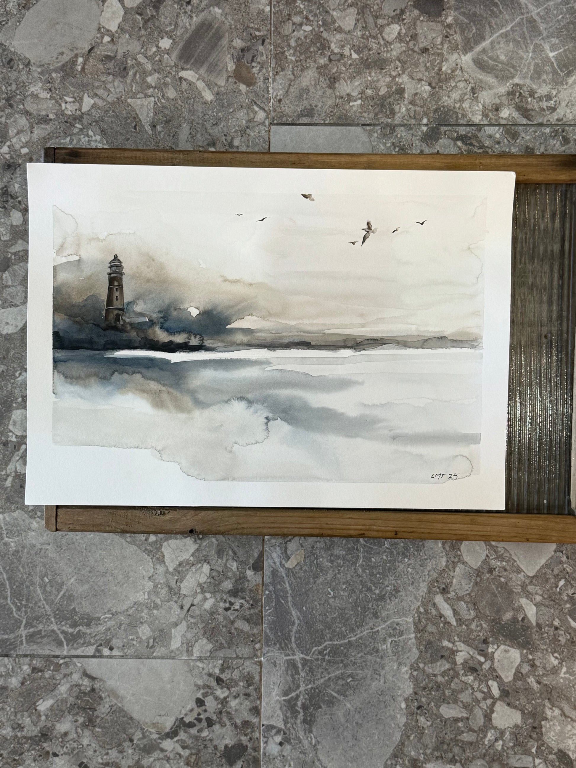 Water Colour; Lighthouse Birds - unframed - Linda Titow